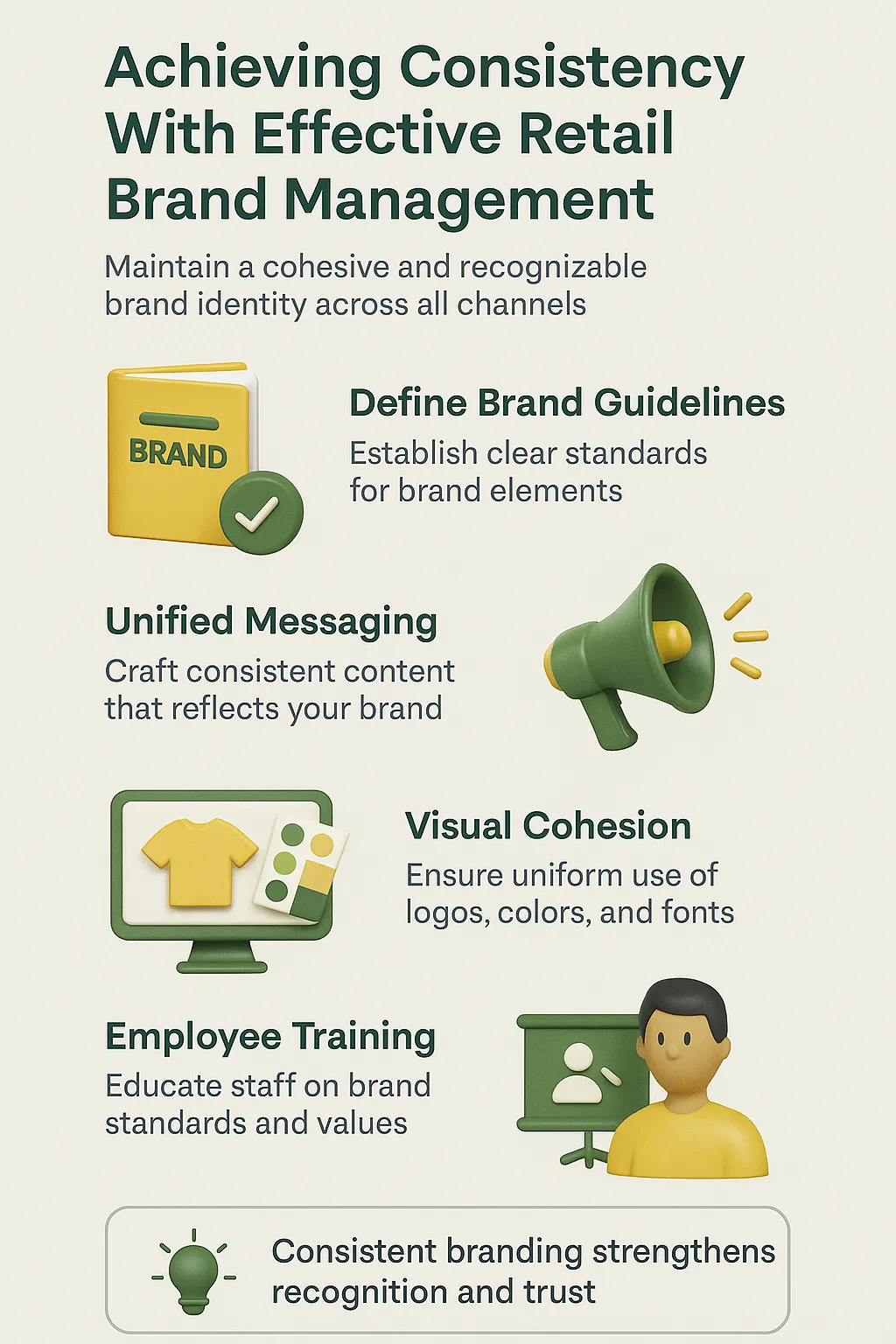 Tools like digital asset management systems, style guides, and customer feedback platforms help retailers monitor and unify branding across multiple channels.